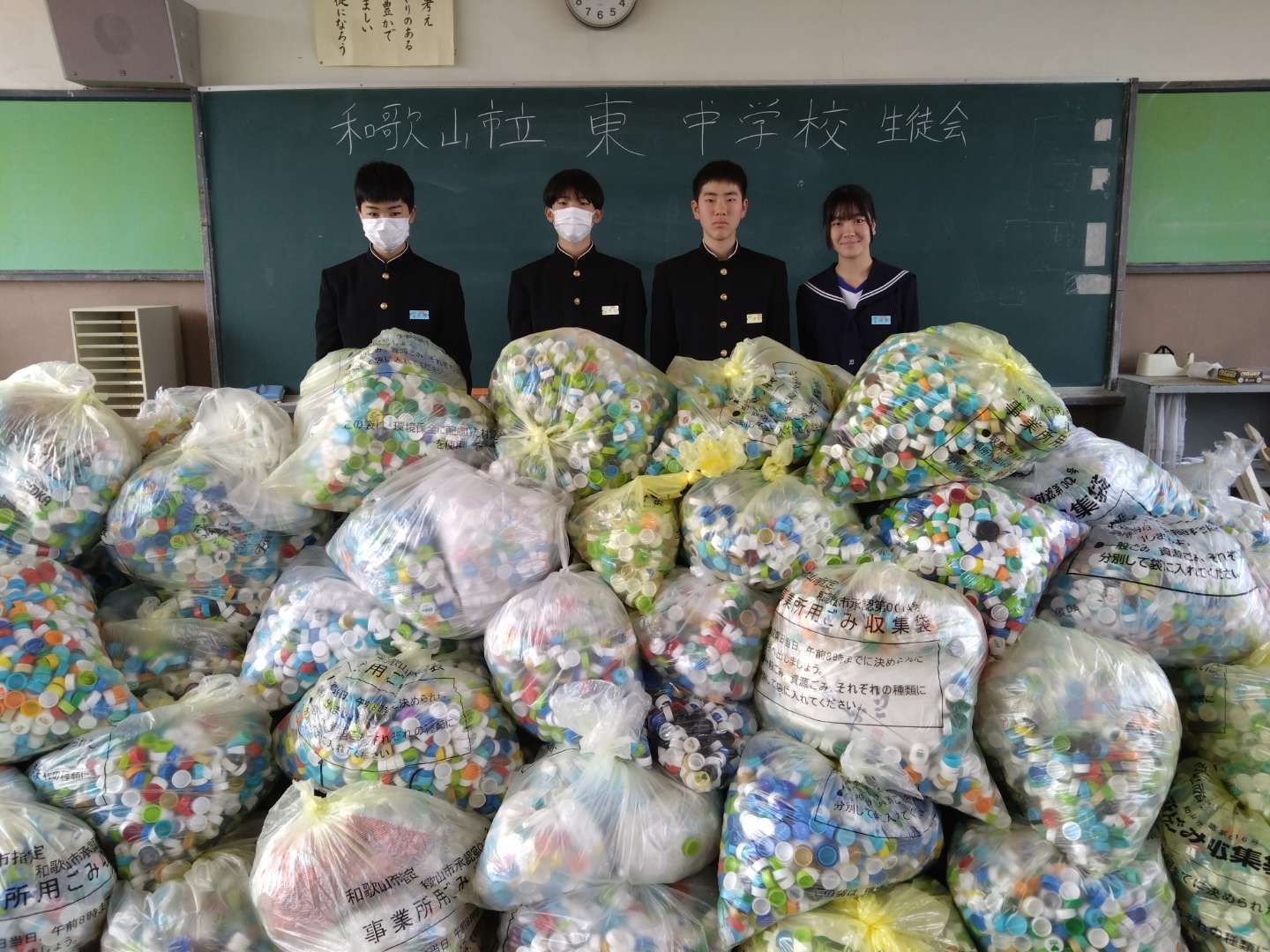 和歌山市立東中学校様より、たくさんのエコキャップを寄付していただきました😀