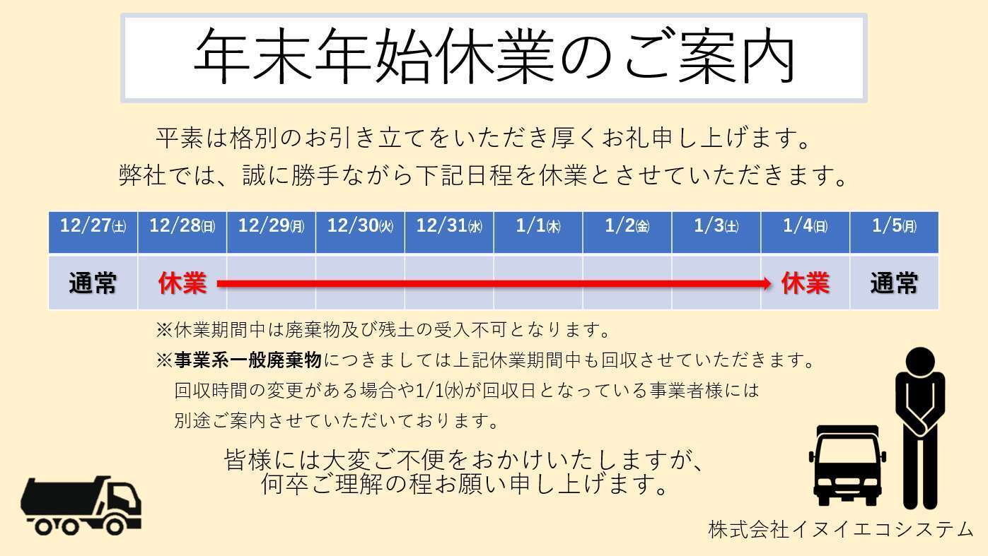 12月28日㈰から1月4日㈰まで休業させていただき、